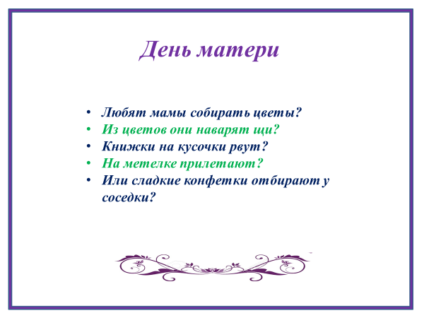мы с вами проведём викторину, посвящённую нашим мамам.